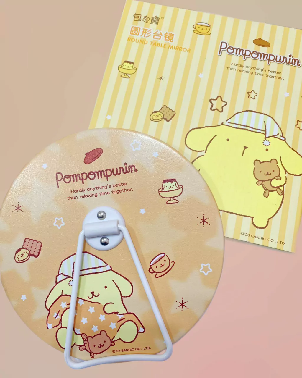 Espejo de Mesa Redondo Pompompurin – Diseño Kawaii y Portátil