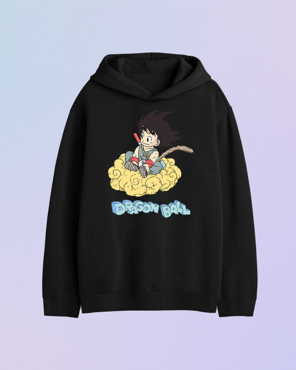 ¡Volá alto con Goku y su fiel Nube Voladora con este hoodie que captura la esencia aventurera de Dragon Ball! Perfecto para fans que desean llevar consigo la nostalgia y energía del joven Saiyajin.