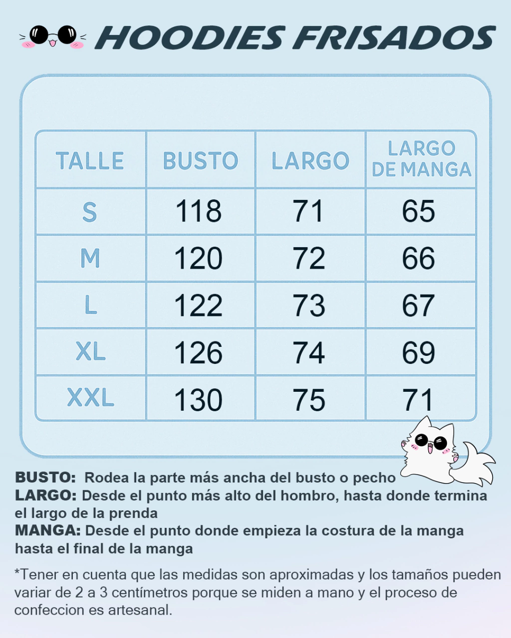Talles disponibles: S, M, L, XL, XXL