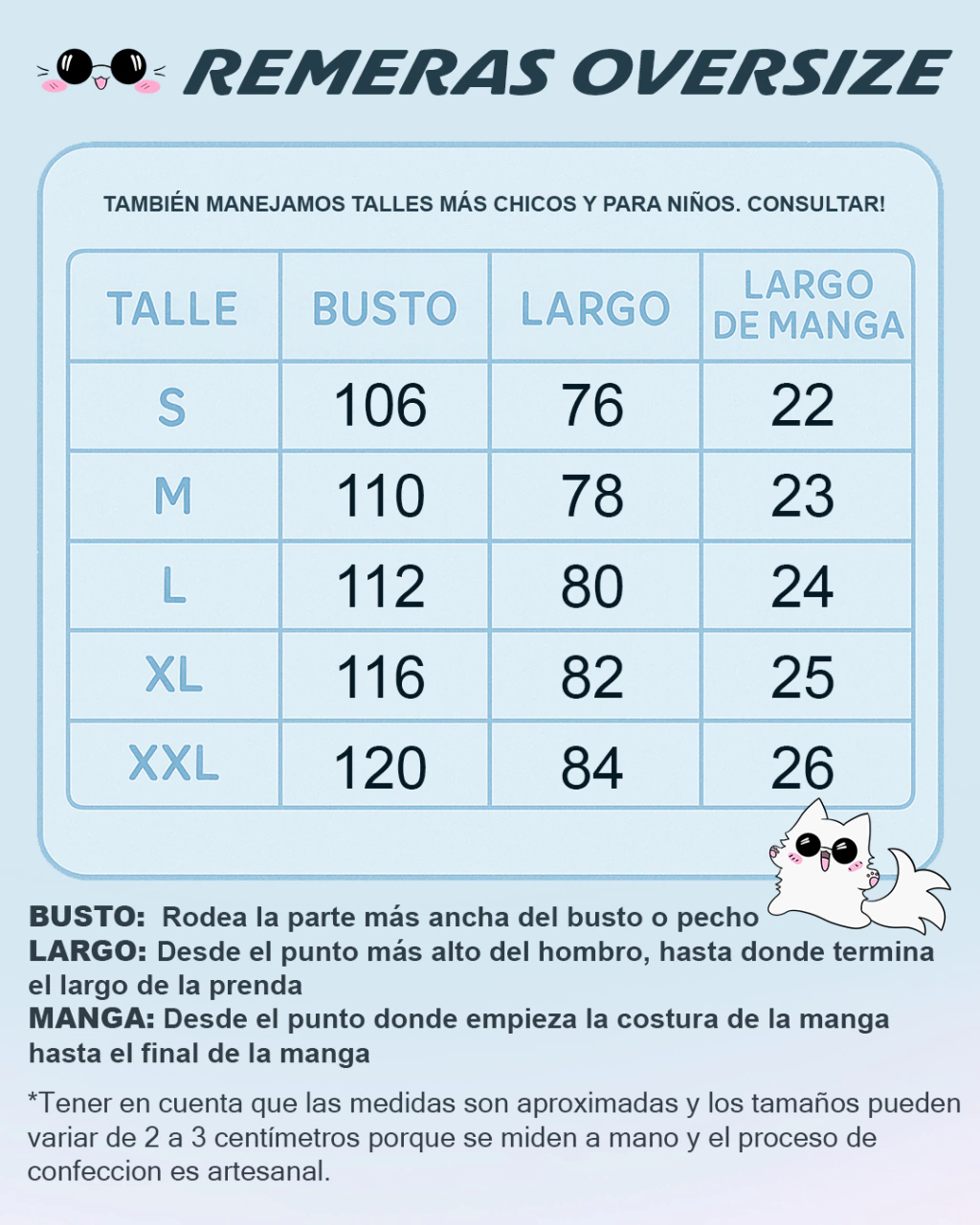 Talles disponibles: S, M, L, XL, XXL.