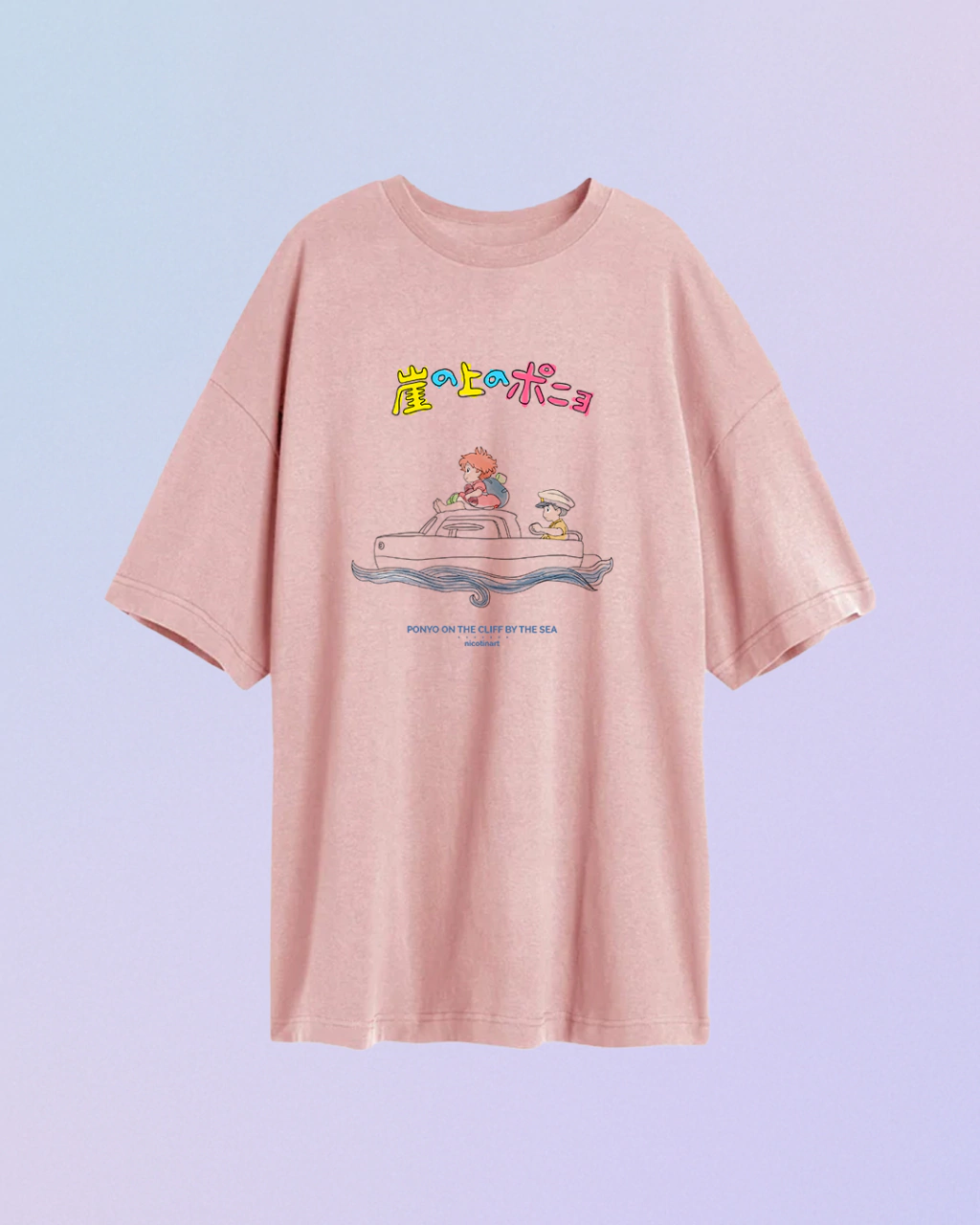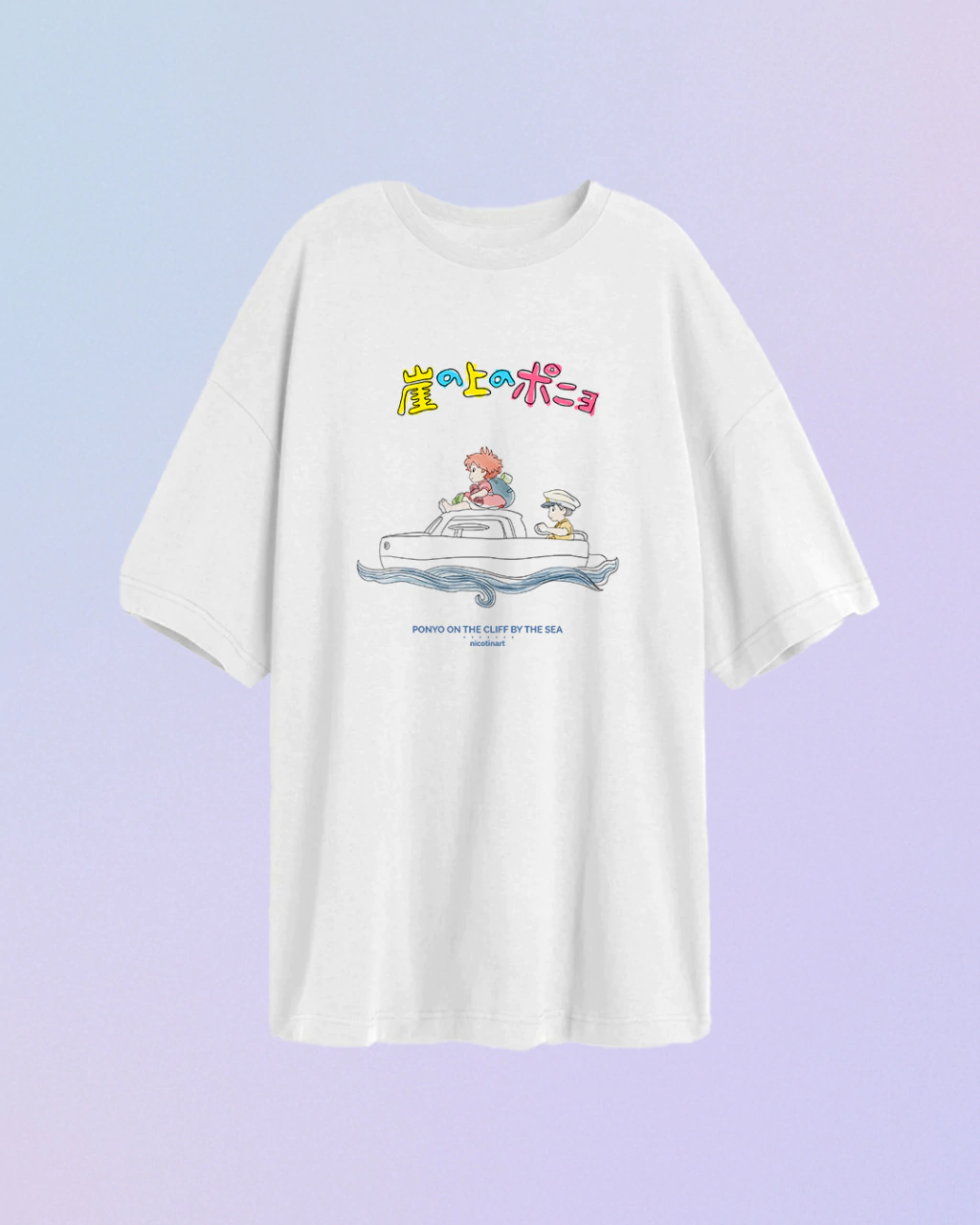¡Sumergite en la magia del océano con esta remera inspirada en Ponyo en el acantilado! Perfecta para fans de Studio Ghibli que desean llevar consigo la ternura y la aventura de esta encantadora película.